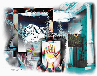 These works have been created using Fractal Design Painter, Photoshop, Picture Publisher and a host of other ad-ons and filters. They incorporate original photographs, scanned collage elements and other digital techniques. For more information on available artworks contact Stephen Rock or follow this link to see a bunch more of the artist's work.