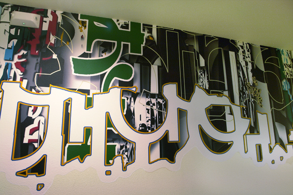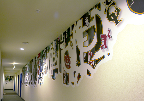 Wall prints produced at Rock's Studio, 80 linear feet of floor to ceiling prints on matte paper at 9' high. Included imaging, scanning, tiled layout and installation of final work.